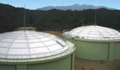 広島県廿日市市 貯水用円筒形PCタンク アルミニウム製屋根の設計開発・施工